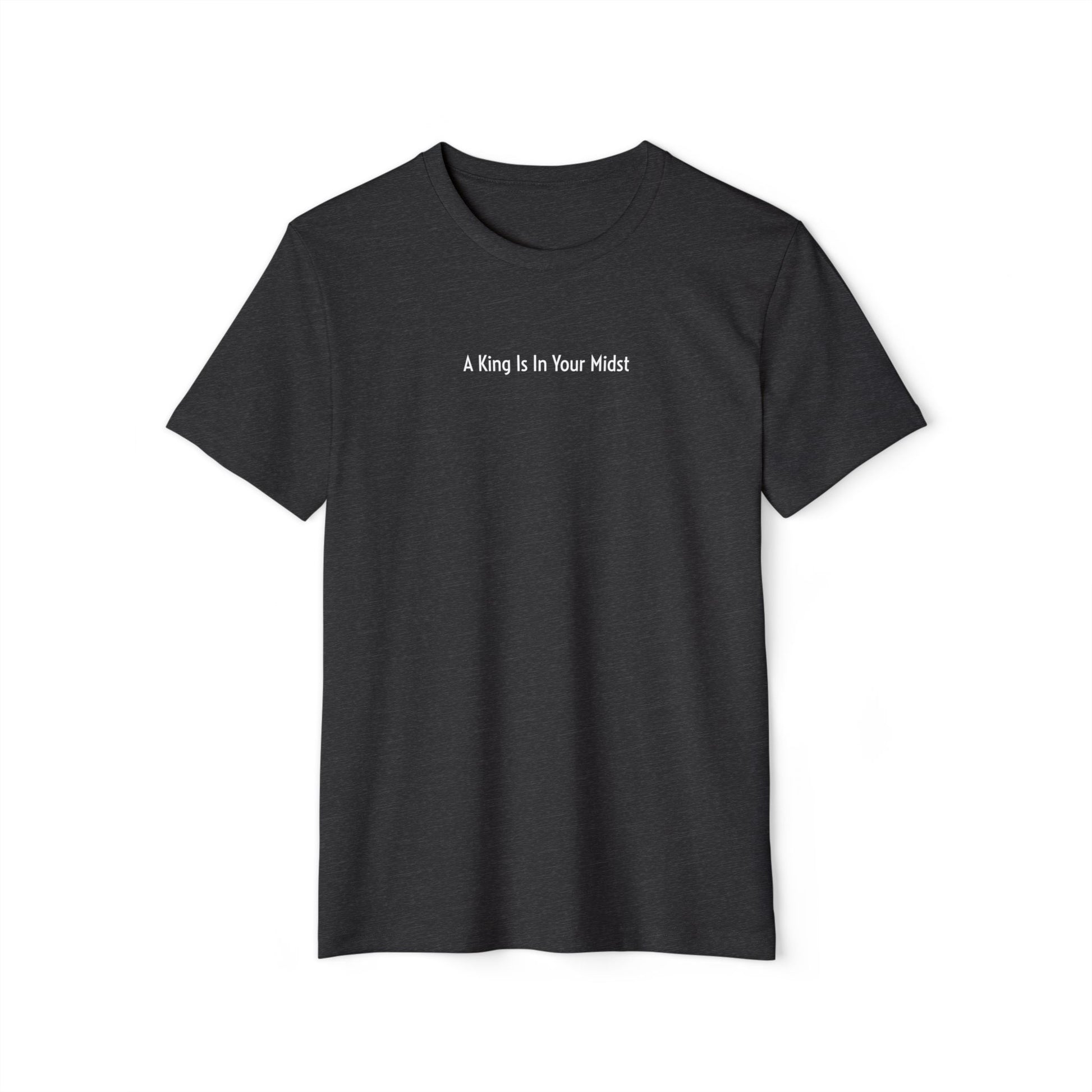 A King Is In Your Midst™ (A Collection of Kissed By The Earth™) Recycled Organic T-Shirt - White on Dark Gray Heather (1st Edition)